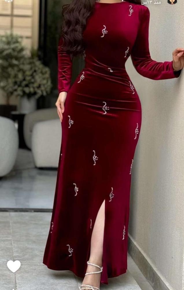 وصف المنتج: فستان ناعم أنيق مصنوع من قماش مخمل يتميز بتصميم فريد وأنيق يبرز جمال قوامك، ومثالي للمناسبات الخاصة.