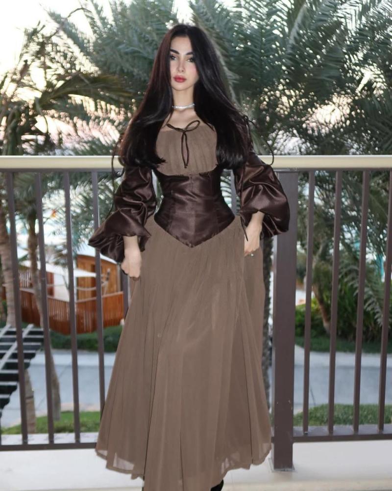 وصف المنتج: فستان ناعم أنيق مصنوع من قماش شيفون وجلد يتميز بتصميم فريد وأنيق يبرز جمال قوامك، ومثالي للمناسبات الخاصة.
